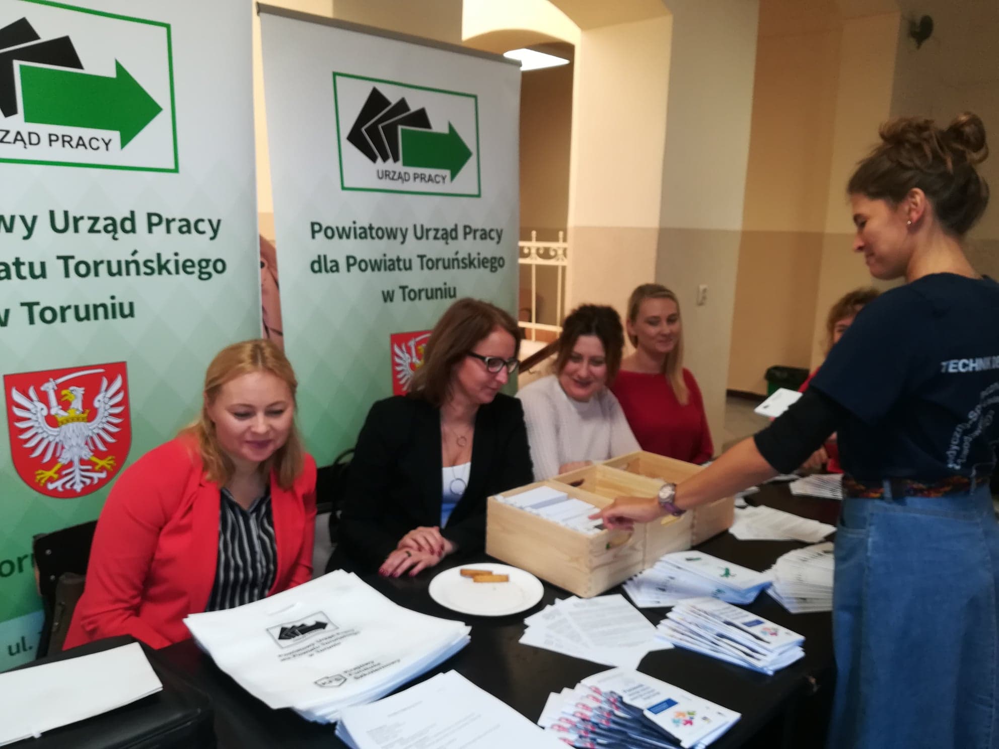 Tutejszy Urząd Pracy zorganizował stanowisko promocyjne, przy którym osoby zainteresowane mogły uzyskać informację na temat jego funkcjonowania, zapoznać się z aktualnymi ofertami pracy lokalnego rynku pracy. Osoby uczestniczące w spotkaniu mogły zapoznać się z realizowanymi usługami rynku pracy w postaci pośrednictwa pracy oraz poradnictwa zawodowego. Osoby przybyłe na Toruńskie Dni Kariery mogły otrzymać ulotki z zakresu możliwości uzyskania pomocy z urzędu pracy oraz pobrać materiały promocyjne. Dodatkowo pracownicy CAZ poprowadzili zajęcia warsztatowe dla chętnych pt. „Oczekiwania pracodawców" - o kompetencjach, zawodach przyszłości oraz funkcjonowaniu rynku pracy.